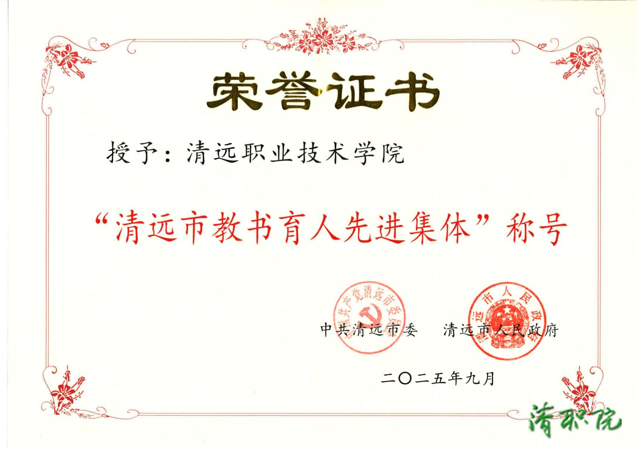 9月10日教师节之际,清远市委、市政府对教育领域杰出集体与个人进行表彰。清远职业技术学院凭借深厚文化底蕴、创新教育理念和显著育人成效,脱颖而出。这一殊荣是对学院过往努力的高度肯定,也是对未来发展的激励与期许。 清远职业技术学院始终坚守“立德树人”理念,致力于培养德智体美劳全面发展的高素质技术技能人才。学院师资队伍师德高尚、业务精湛,在专业领域造诣深厚,教育实践爱心与耐心兼具。学院不断探索创新教育模式,从课堂到实训、理论到实践,为学生铺就成长之路。 多年来,学院为社会输送大量优秀人才,他们在各自岗位发光发热,为地方经济社会发展贡献力量。